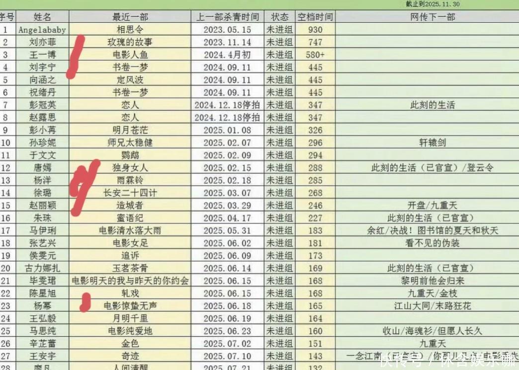 不外,有网友核算了一下,刻下很久没拍戏的艺东谈主名单。